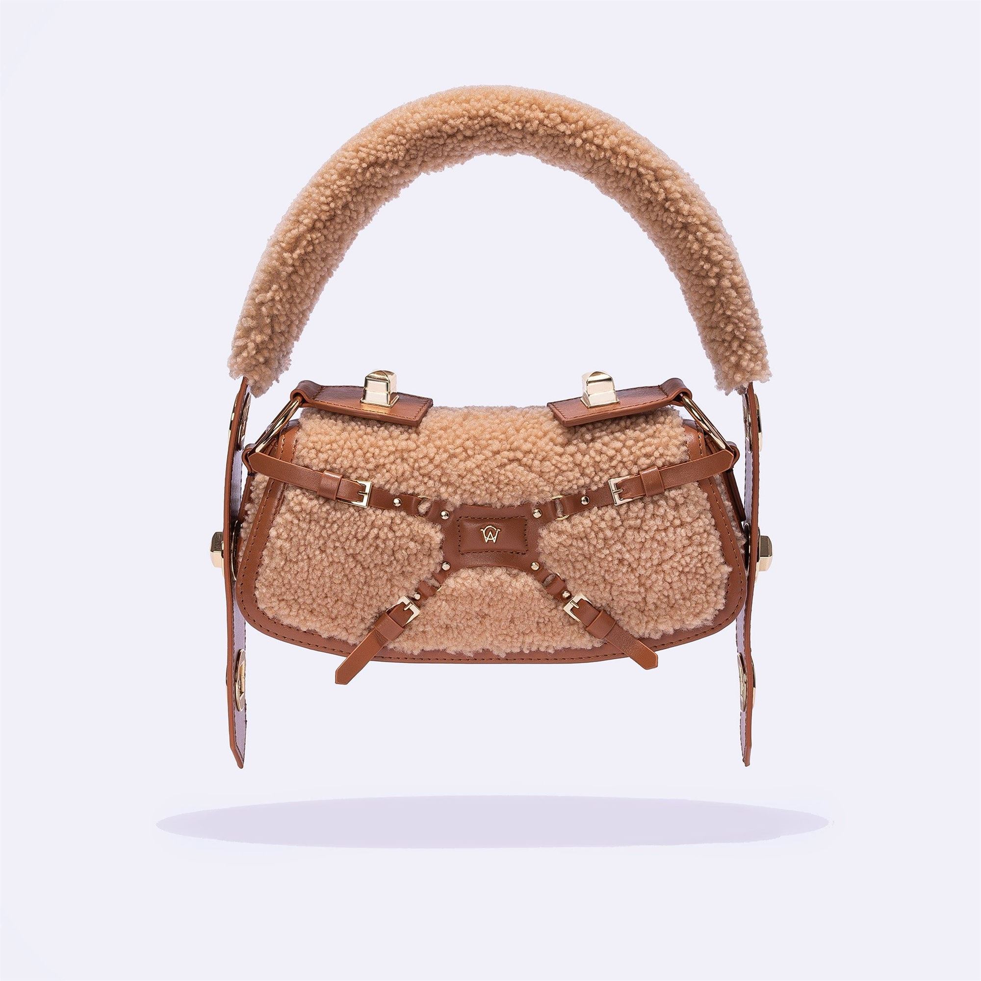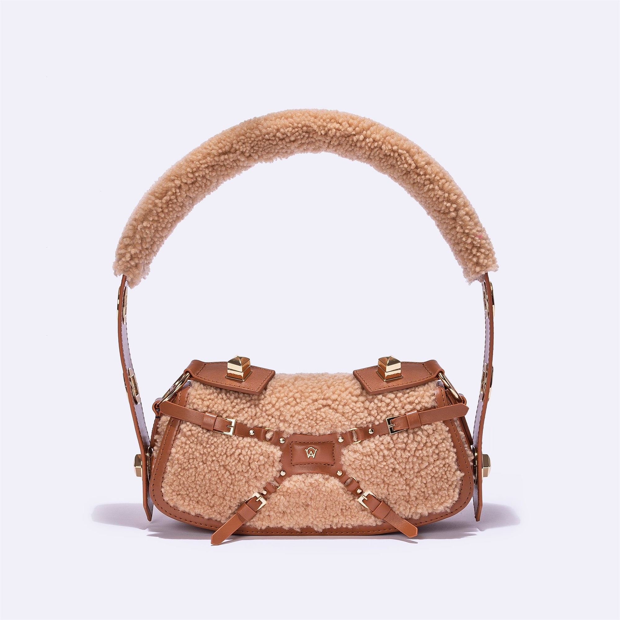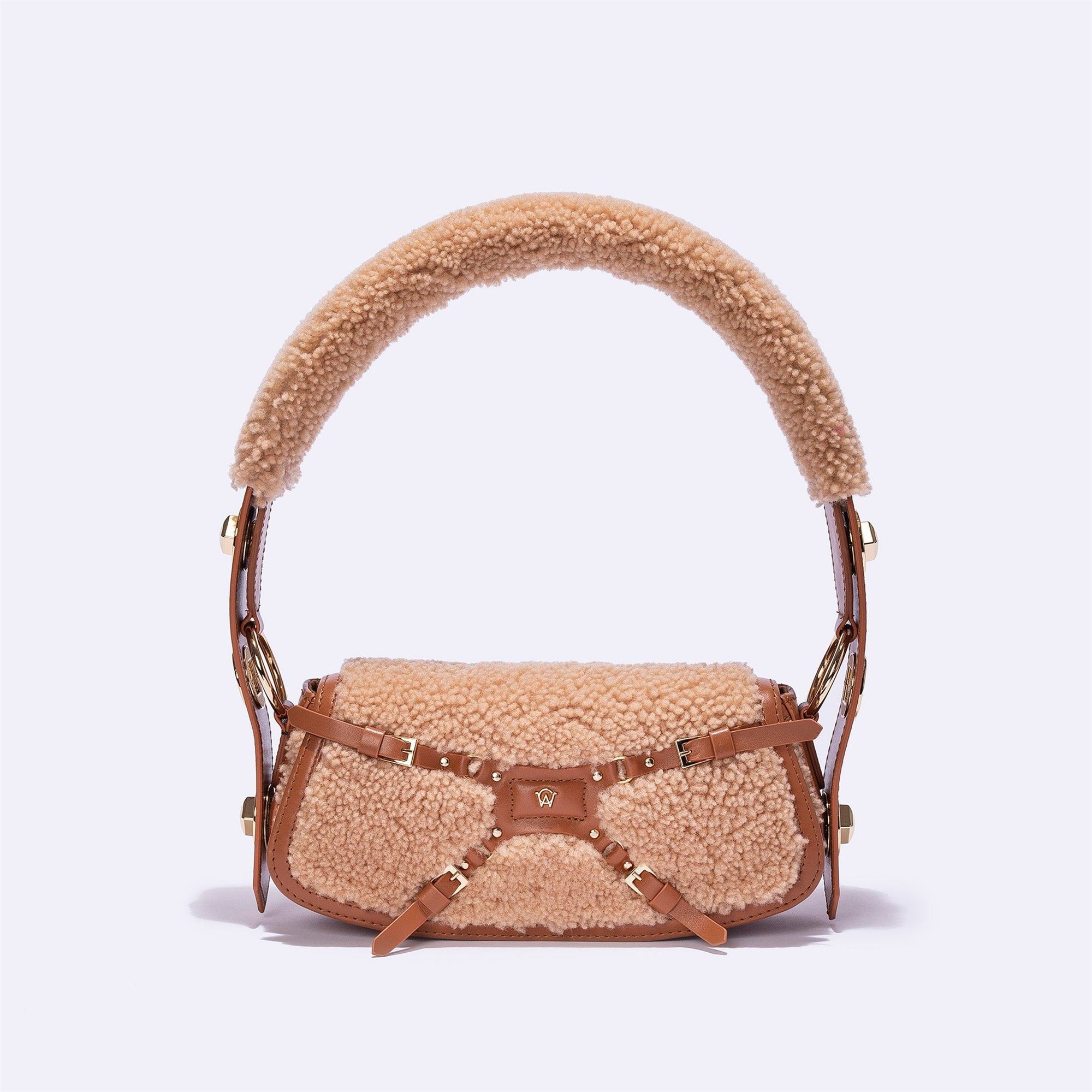 LILITH Teddy in pink shearling fabric. Inspired by the 2000s, wear the Lilith bag across your torso or over your shoulder. Lilith Teddy bag is crafted from the highest quality calf leather with shearling details. You can carry your Lilith bag as a shoulder bag, cross body, or grasp it as a clutch bag depending on your mood. With six different ways to wear it, the Lilith bag will be your companion from day to night. Adjust its thick shoulder strap to wear your crossbody. The chunky strap is underpinned with smooth and durable leather so it will last the test of time.